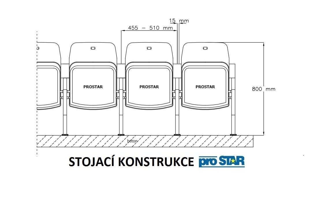 - na přání zákazníka montáž sklápěcích sedaček pro stadiony ve formě jednotlivých, individuálně upevněných konstrukcí,